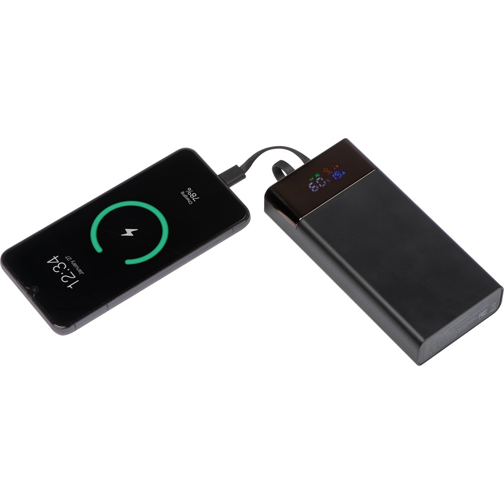 Die ultimative mobile Stromversorgung mit unserer Powerbank, die eine beeindruckende Kapazität von 20.000 mAh bietet. Diese leistungsstarke Powerbank ist mit einer Schnellladefunktion ausgestattet, sodass Ihre Geräte im Handumdrehen wieder einsatzbereit sind. Mit zwei USB-Anschlüssen, einem USB-C-Anschluss und einem integrierten iOS-Kabel bietet sie vielfältige Lademöglichkeiten für alle Ihre Geräte. Der smarte LCD-Ladebildschirm zeigt Ihnen den aktuellen Ladezustand und andere wichtige Informationen auf einen Blick an. Ihr persönliches Logo oder Ihre Werbebotschaft wird prominent auf die Powerbank gedruckt und sorgt für eine auffällige und professionelle Präsentation Ihrer Marke. Diese Powerbank ist das ideale Werbegeschenk oder praktische Accessoire für den Alltag, das durch seine Funktionalität und hochwertige Verarbeitung überzeugt.