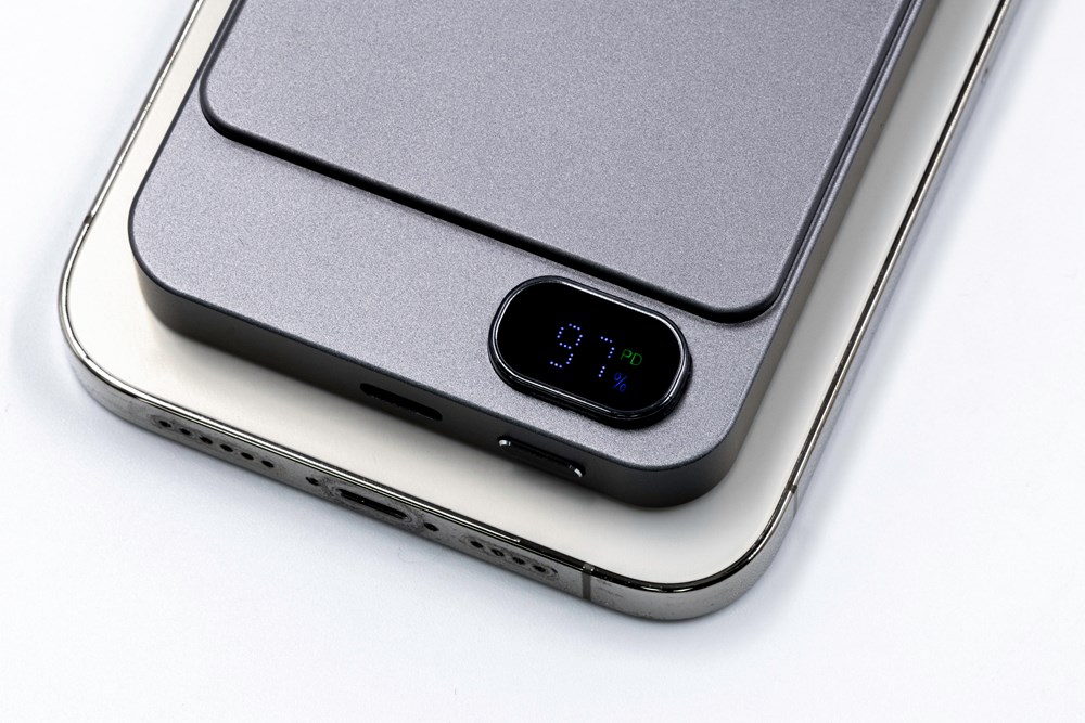 Die Powerwave 5000 mAh Powerbank verfügt über ein schlankes Aluminium-Unibody-Design, das leicht in jede Tasche passt. Mit einer Kapazität von 5.000 mAh unterstützt sie 15 W magnetisches kabelloses Laden (MagSafe, Qi1 & Qi2) für einfaches, kabelloses Laden. Außerdem verfügt es über einen 20-W-USB-C-Anschluss (PD 3.0), um Laptops oder andere Geräte bei Bedarf aufzuladen. Das LCD-Display zeigt Akkustand und Ladestatus an, während ein intelligenter Chip Schutz vor Überstrom, Überladung, Überhitzung und Kurzschluss bietet. Mit Magnetverschluss für eine schnelle und sichere Befestigung.