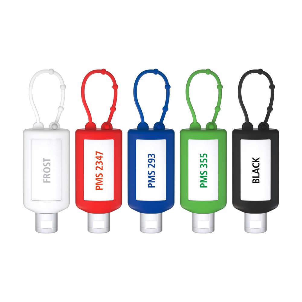 Praktische Kosmetikflasche zum Anhängen! Das Fläschchen mit Silikonhülle ist nicht nur optisch ein echter Hingucker! Raffiniert mit Schlaufe zum Anhängen an den Wander-Rucksack, die Sport-Tasche oder ans Fahrrad. 50 ml Flasche und Klappdeckel (zufällig ausgerichtet) weiß; Silikonhülle und Schlaufe in rot. Nachfüllbar. Flasche hergestellt aus 100% recyceltem PET, weiß mit leichter R-PET-Färbung.