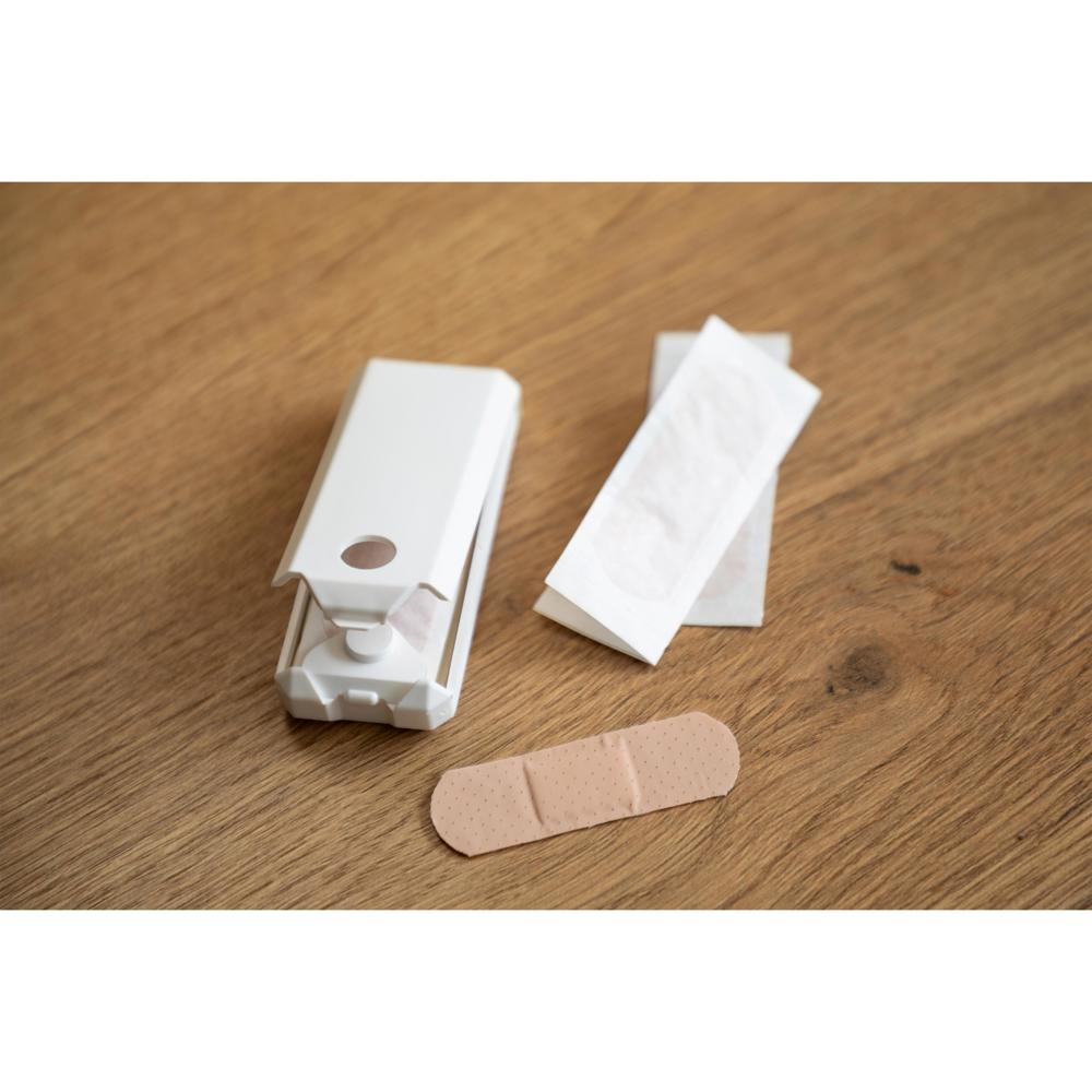 Mit einer Hand zu öffnen aufgrund des Druckknopf-Klickverschlusses. Kunststoffbox befüllt mit 5 x 2-er Pflastern. Farbkombinationen, Fußball-Design und geprägtes Logo im Verschlussknopf auf Anfrage.